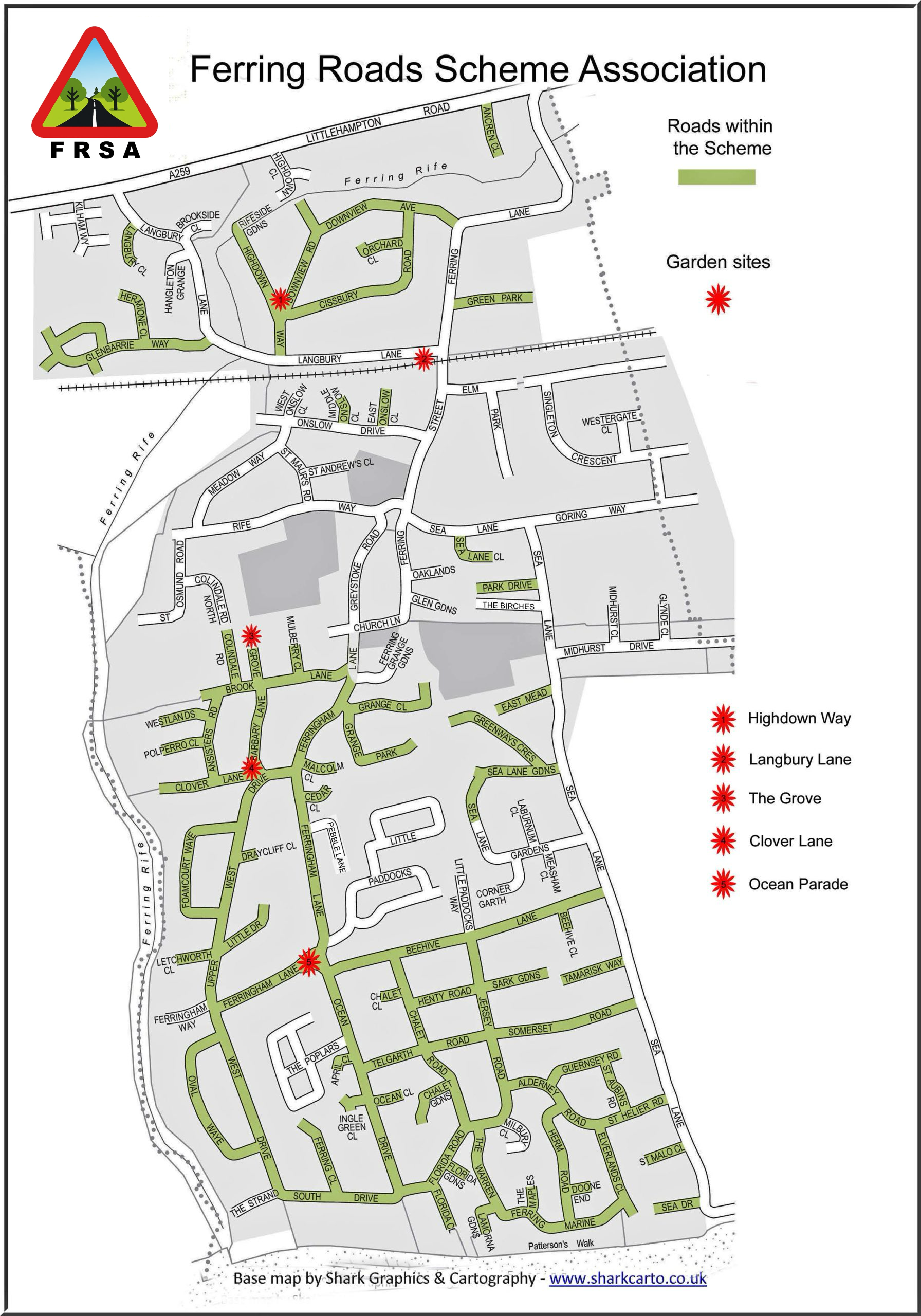Highlighted roads are in the FRSA scheme. Map only for guidance .